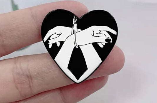 Heart shaped pin with tied wrists